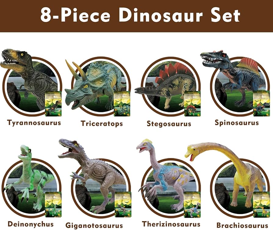 Myouth Easter Dinosaur Figures Toy With Info Card 8 Pack Realistic Jurassic Dino Set 5 1 9 4 Inch Action Figurines Playset For 3 4 5 6 Year Up Old Boys Girls